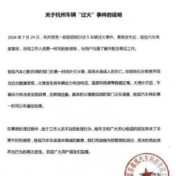 #极狐自燃事件#7月25日,极狐汽车发布关于杭州车辆“过火”事件的说