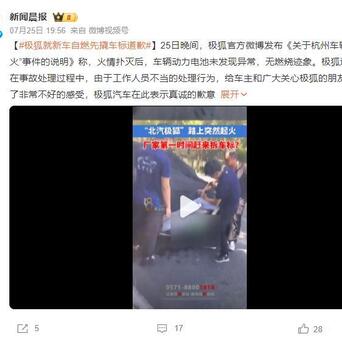 其中指出,公司已配合消防部门在第一时间扑灭火情,现场未造成人员伤亡,具体的火情原因消防部门正在调查。在事故处理过程中,由于工作人员不当的处理行为,给车主和广大关心极狐的朋友带来了非常不好的感受,极狐汽车在此表示真诚的歉意。